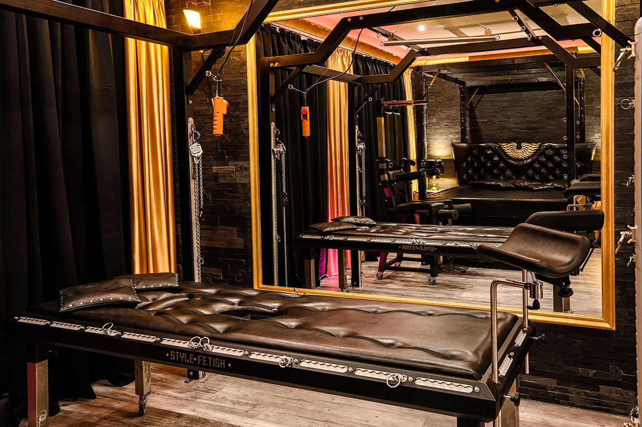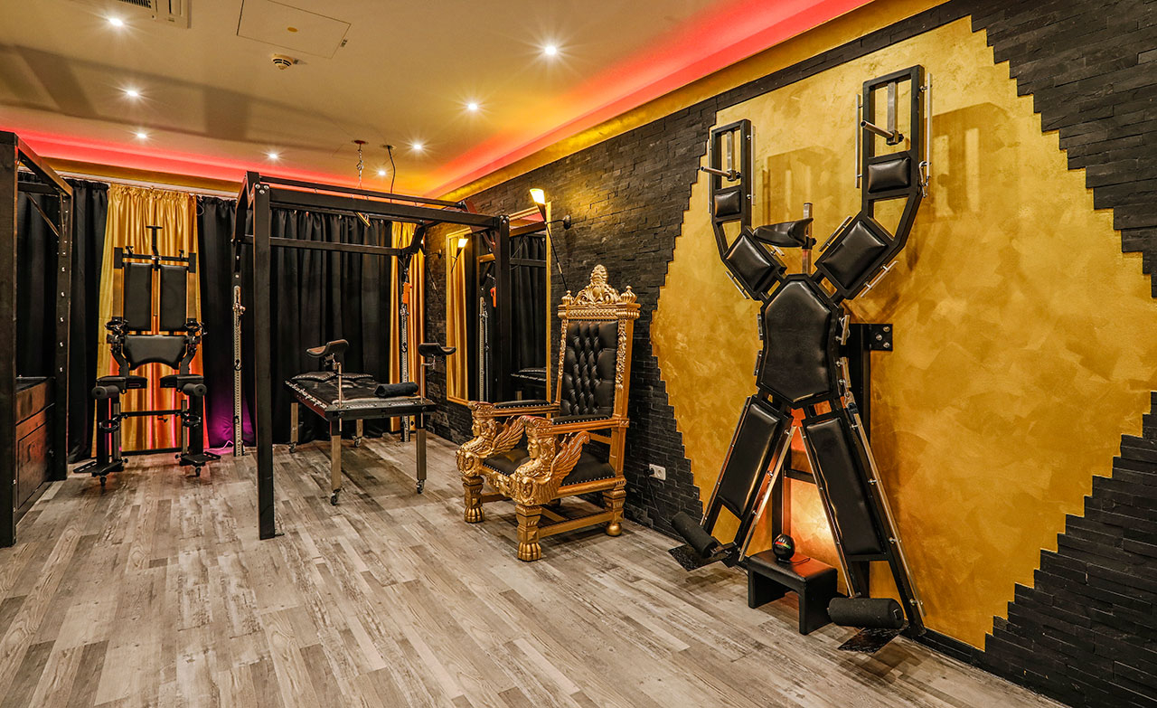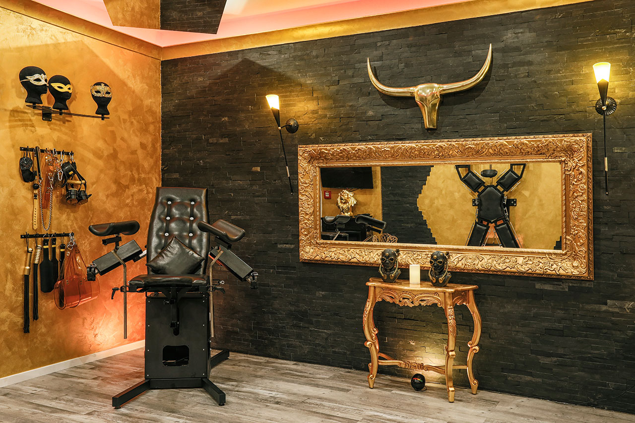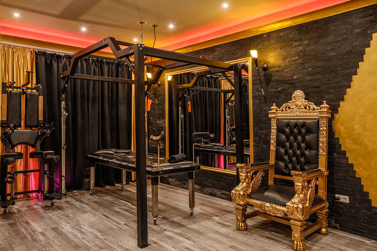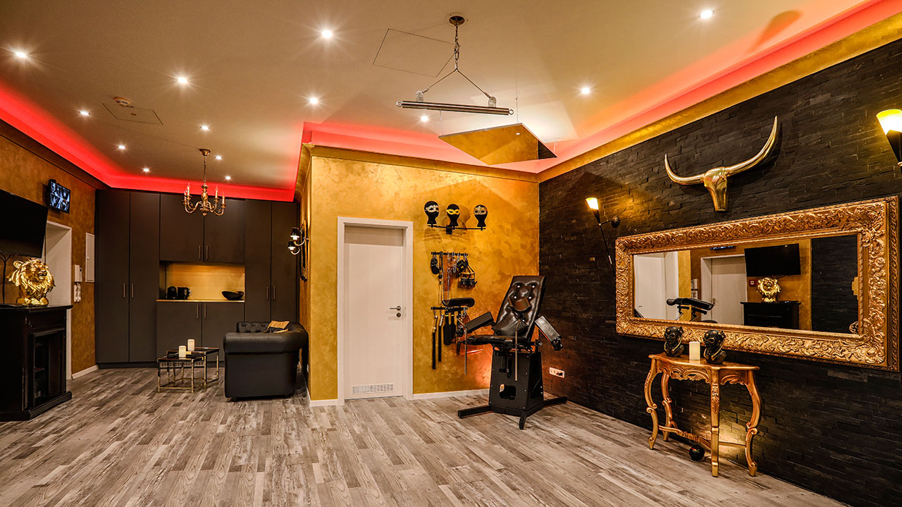 Die Einrichtung ist Luxus pur! Unser extrem hochwertig ausgestattetes BDSM Apartment Gold ist ein einzigartiges bizarres Spielparadies. Hier findest Du alles, was das Herz des SM- Liebhabers höher schlagen lässt. Vom klassischen Inventar eines Domina-Studios bis hin zu modernstem Spiel- und Accessoire jeder Art.
